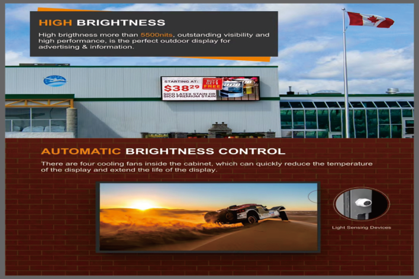 Ensures long-distance visibility, even in direct sunlight.